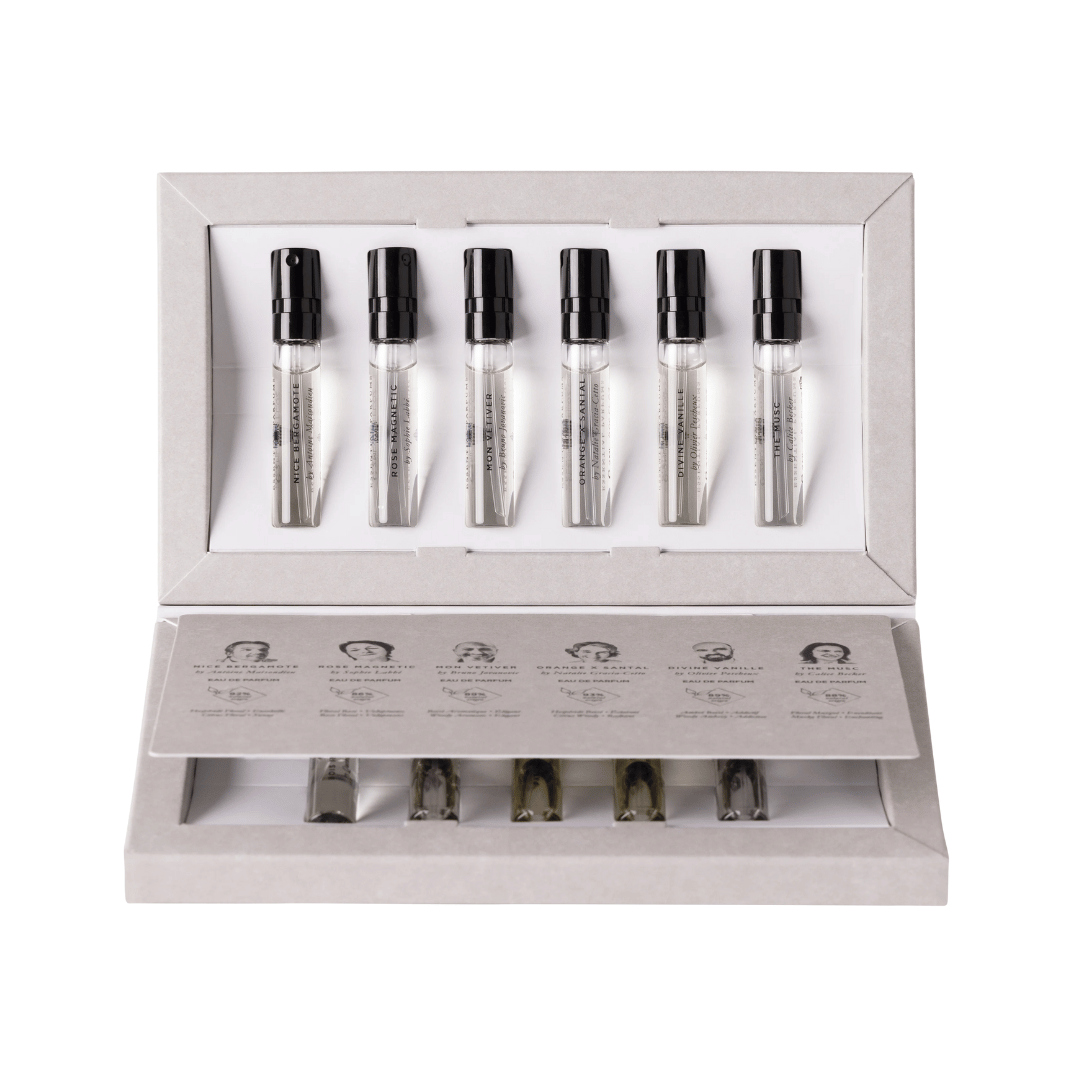 Unveil the world of Essential Parfums with the updated Discovery Set, a curated collection of 11 luxurious samples (2ml, 0.06 fl. oz each) that allows you to explore the full range of our exquisite fragrances - including the latest addition, Velvet Iris. This set is the perfect way to experience the artistry and craftsmanship behind each scent, offering a unique opportunity to find your perfect fragrance or simply indulge in a variety of sophisticated options.